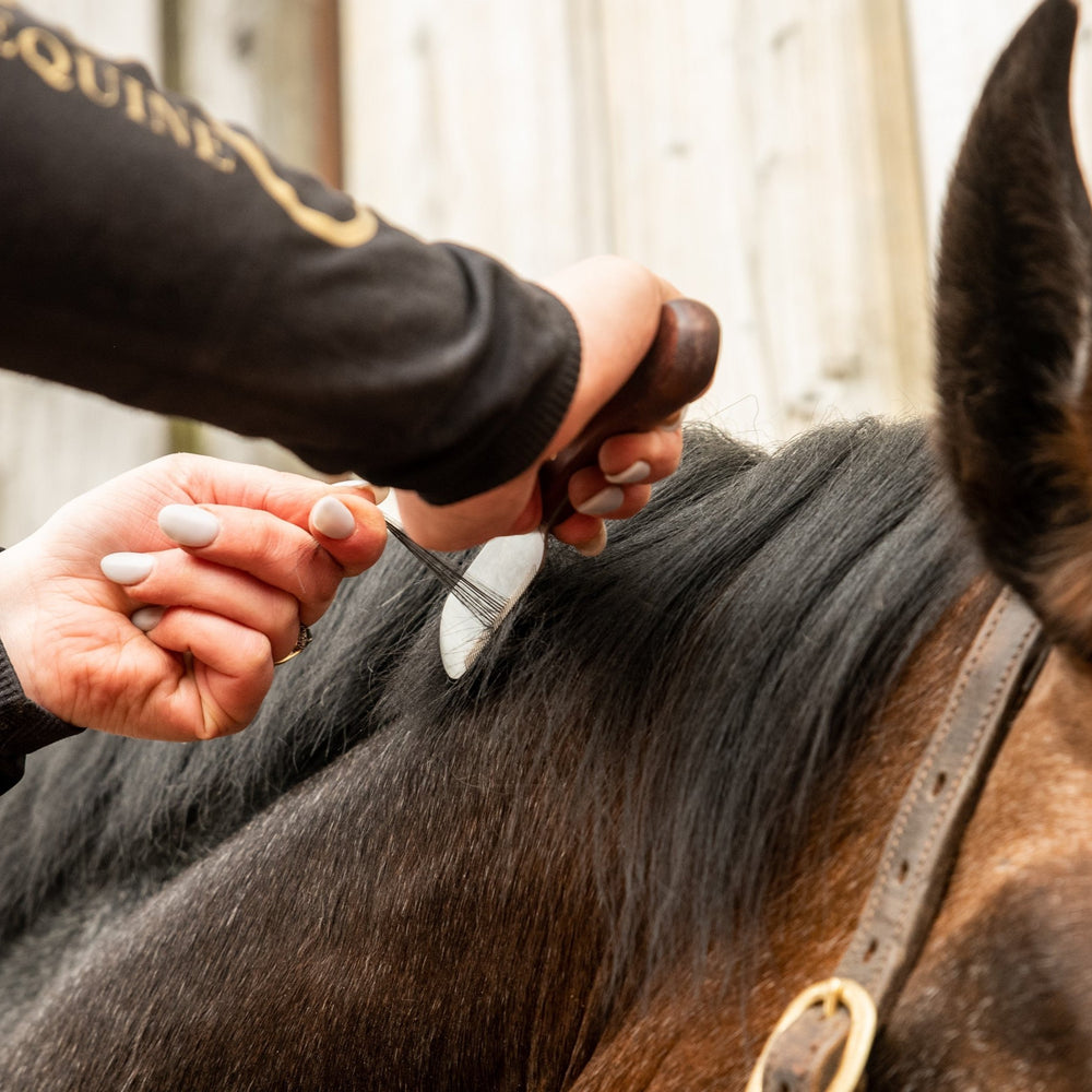 We have spent many years researching and designing tools for specific uses and needs. Hundreds of hours have been spent refining and optimising our tools so that they are safe and effective for use on horses. Our range of curved safety scissors are a safe option for neatly and effectively trimming around ears, legs and fiddly areas. As horse owners ourselves, it is important that we get this right!