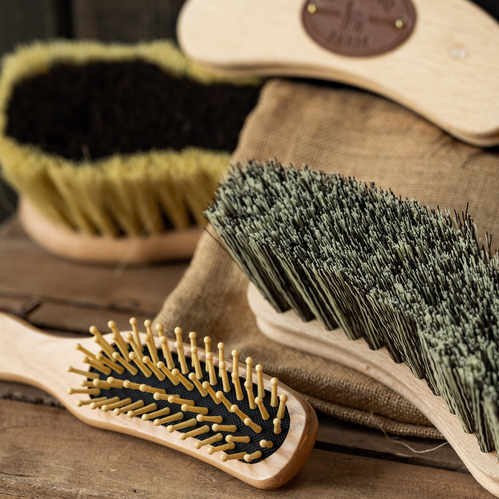 The Borstiq Show Day Grooming kit comprises a purposely chosen range of brushes for the show & competition day. These horse grooming brushes have been chosen for their softness and ability to give a final show day shine. As with all Borstiq horse grooming brushes, they are of exceptional quality and finished beautifully. If you wish to add quality to your horse grooming kit then look no further!