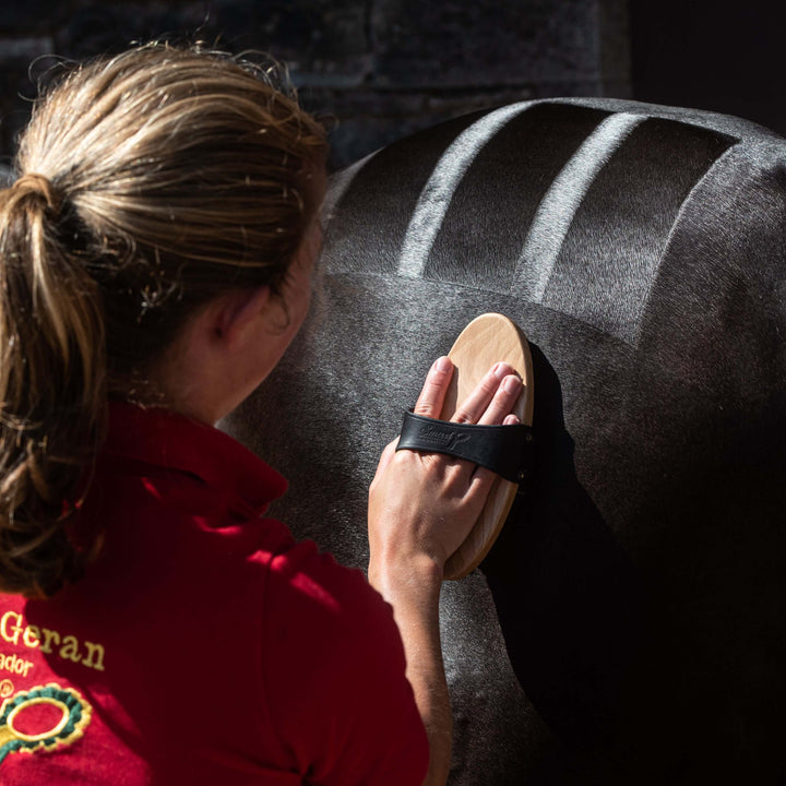 The unique craftsmanship and ergonomic design of this brush make it comfortable to hold and suitable for all hand shapes and sizes. Only pure, natural bristles are used in the making of this environmentally-friendly brush. Finished with an ergonomic, hardwood back and leather strap for ease of use.