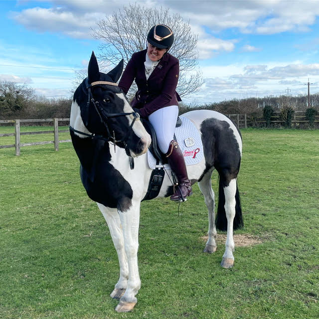 I’m Sarah, a 30 something amateur eventer with my BFG Ozzy, who is a whopping 18.3hh! We’ve been a partnership for almost 5 years and gone from never eventing before to moving up the levels to Novice. Our 2025 aims are to continue low level eventing and also try our hand at some show jumping as Ozzy loves to jump! Being a dapple grey (more white than anything) my go to products are the deep purple shampoo, polar white spray, cover up spray and leg & body whitener – they are all life savers when you have a grey!