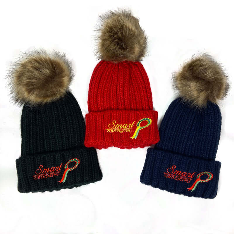 Restez au chaud en hiver avec un bonnet à pompon Smart Grooming brodé.